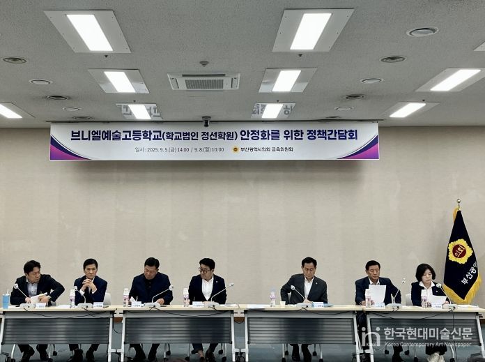 한국현대미술신문 정소영 기자 | 부산광역시의회 교육위원회는 9월 5일과 8일 양일간 시의회 대회의실에서 브니엘예술고등학교(학교법인 정선학원) 안정화 방안을 논의하기 위한 정책간담회를 개최했다.