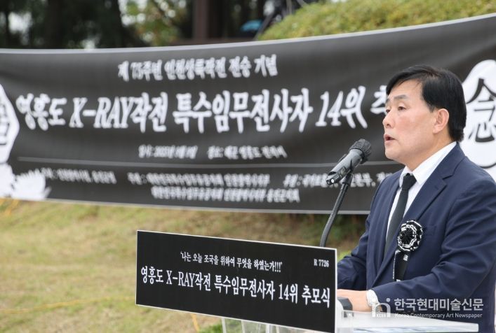 한국현대미술신문 박재남 기자 | 영흥도 해군전적비에서 지난 9일, 자유민주주의 수호를 위한 인천상륙작전의 성공적 초석이 된 ‘영흥도 X-RAY작전’ 특수임무전사자 14위를 기리는 추모식이 엄숙히 거행됐다.