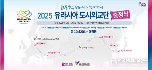 한국현대미술신문 정소영 기자 | 부산시와 부산글로벌도시재단은 '2025 유라시아 도시외교단'이 글로벌 허브도시 부산 브랜드를 홍보하고 자매·우호도시와 교류 협력하기 위해 오늘(10일)부터 9월 25일까지 총 16일간의 여정을 떠난다고 밝혔다.