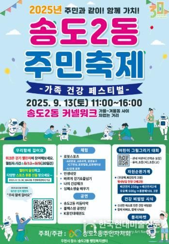 한국현대미술신문 박재남 기자 | 연수구 송도2동 주민자치회가 오는 13일 송도 커넬워크 겨울동에서 가을동 사이 차 없는 거리에서 '2025 송도2동 주민축제'를 개최한다.