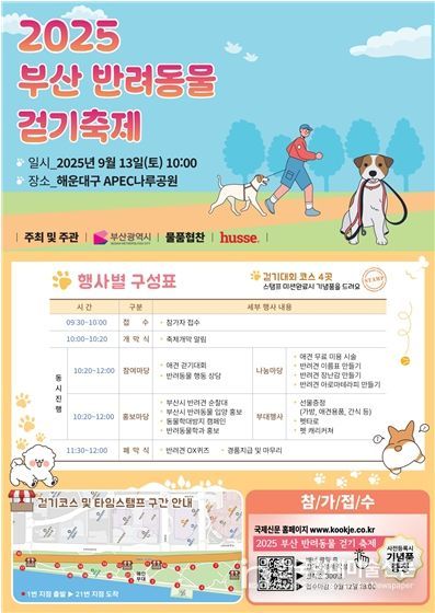 한국현대미술신문 정소영 기자 | 부산시는 오는 13일 오전 10시부터 12시까지 해운대구 에이팩(APEC)나루공원 일원에서 '2025 부산 반려동물 걷기 축제'를 개최한다고 밝혔다.