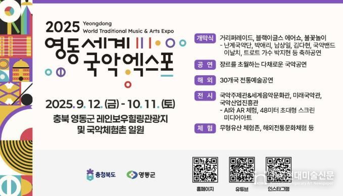 한국현대미술신문 신정은 기자 | 영동세계국악엑스포 조직위원회는 행사장을 찾는 관람객들의 편의를 위해 오는 9월 12일부터 10월 11일까지 무료 셔틀버스 4개 노선과 함께 승용차·대형버스로 구분해 차종별 주차 공간을 효율적으로 운영한다고 밝혔다.