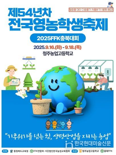한국현대미술신문 신정은 기자 | 충청북도교육청은 오는 16일부터 18일까지 2박 3일간 청주농업고등학교에서 '제54년차 전국영농학생축제(2025 FFK 충북대회)'를 개최한다고 밝혔다.