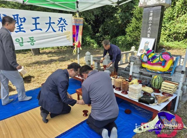 한국현대미술신문 신정은 기자 | 옥천군 군서면 월전리 성왕추모비 앞에서 백제 성왕의 넋을 위로하는 성왕제가 11일 열렸다.