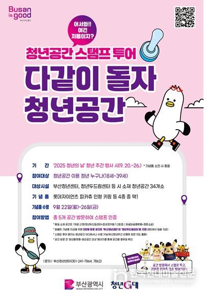 한국현대미술신문 정소영 기자 | 부산시는 청년의 날(9월 20일)을 맞아, 오는 9월 20일부터 26일까지 부산청년주간 동안 '청년공간 스탬프 투어 – 다같이 돌자, 청년공간'을 운영한다고 밝혔다.