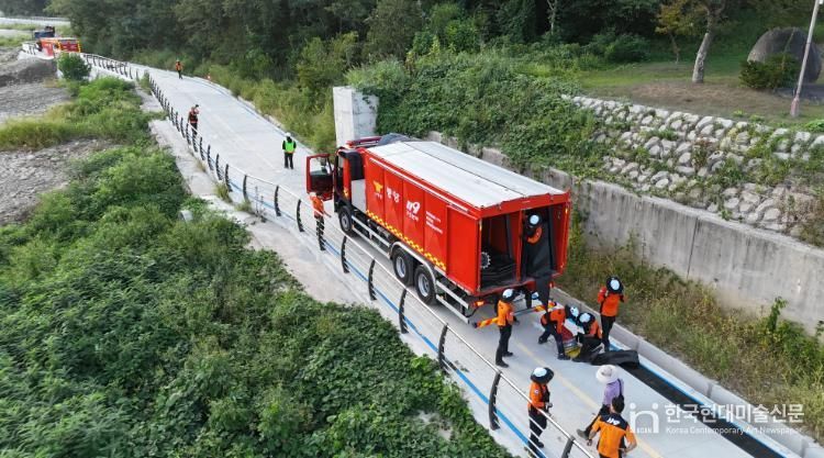 한국현대미술신문 원진 기자 | 강릉시가 최악의 가뭄 위기 상황 속에서 원수 확보를 위해 총력을 기울이는 가운데, 9월 12일 중앙119구조본부에서 대용량포 방사시스템을 지원하여 일 1만 톤 이상의 원수를 홍제정수장으로 송수할 수 있을 것으로 기대된다.