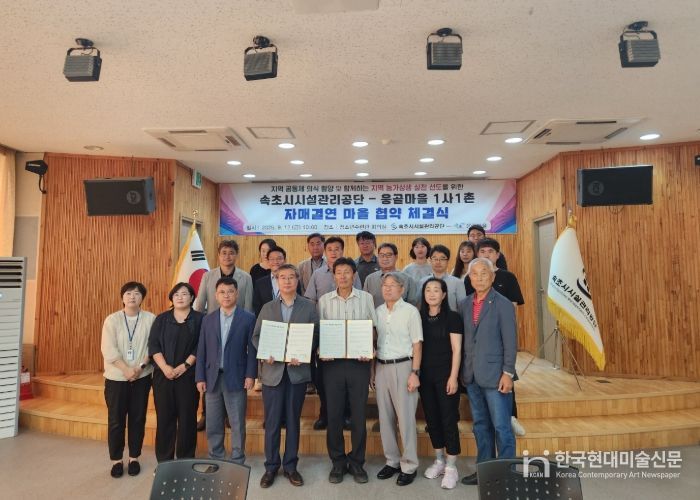 한국현대미술신문 원진 기자 | 속초시시설관리공단은 12일 속초시청소년수련관 회의실에서 응골마을과 지역사회 및 농가 동반성장을 위한 1사1촌 자매결연 협약을 체결했다.
