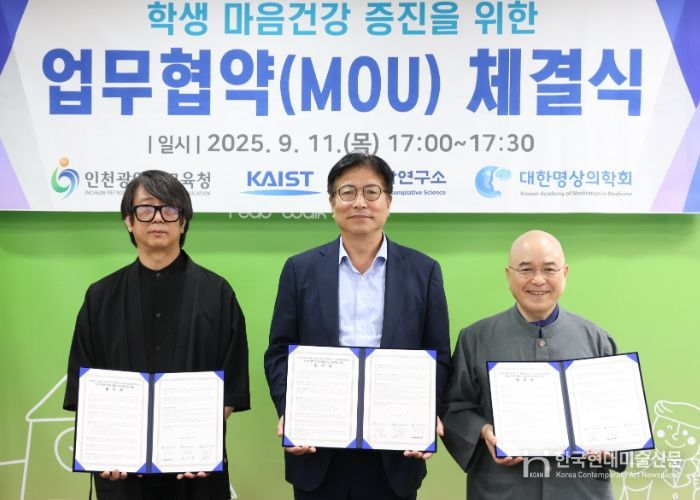 한국현대미술신문 박재남 기자 | 인천광역시교육청은 11일 KAIST 명상과학연구소, 대한명상의학회와 ‘학생 마음건강 증진을 위한 업무협약’을 체결했다.
