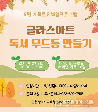한국현대미술신문 박재남 기자 | 인천광역시교육청연수도서관은 9월 27일 오전 10시 30분부터 평생학습1실에서 가족 단위 이용자를 위한 ‘가족 토요체험 프로그램’을 운영한다.