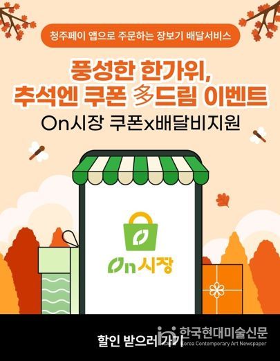 한국현대미술신문 신정은 기자 | 청주시는 민족 대명절인 추석을 맞아 청주페이 앱 내 전통시장 장보기 서비스인 ‘온시장’과 지역 소상공인 상품 전용몰인 ‘청주페이플러스샵’에서 특별 이벤트를 진행한다고 13일 밝혔다.