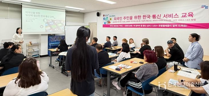 한국현대미술신문 신정은 기자 | 청주시 외국인주민 지원센터는 지난 13일 센터 교육장에서 외국인주민을 대상으로 ‘9월 세계시민교육’을 진행했다. 이번 교육은 LG유플러스의 협조로 열렸으며, 주제는 ‘외국인주민을 위한 한국 통신 서비스 안내’였다.