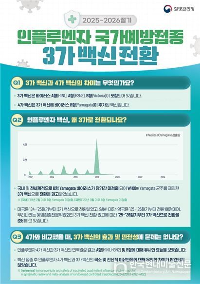 2025~2026절기부터 인플루엔자 백신은 세계보건기구(WHO)의 권고사항과 예방접종전문위원회 심의에 따라 기존 4가 백신에서 3가 백신으로 전환하여 시행된다.