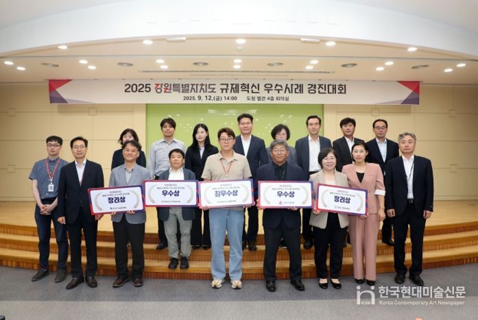 한국현대미술신문 원진 기자 | 강원특별자치도는 9월 12일 오후 2시 도청 별관 회의실에서 내외부 심사단 및 도·시군 관계공무원 등 약 40여 명이 참석한 가운데 2025년 강원특별자치도 규제혁신 우수사례 경진대회를 개최했다.