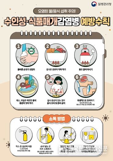 물 부족으로 인한 감염병 예방을 위해서는 ▲물은 반드시 생수로 섭취 ▲손 씻기 대신 물티슈로 손을 닦은 후 손 소독제로 다시 한번 닦기 ▲음식은 충분히 익혀 먹기 ▲음식 섭취 전·후, 화장실 이용 후, 외출 후에는 반드시 손 위생을 철저히 하는 등 감염 예방수칙을 준수해야 한다.