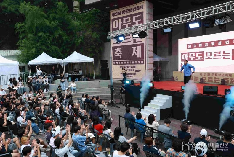 한국현대미술신문 배건 기자 | 서울 은평구는 지난 13일 구파발 폭포 만남의 광장에서 열린 제3회 은평청년축제 “아무도 모르는 축제”가 구민 1만여 명이 참여한 가운데 성황리에 개최됐다고 밝혔다.