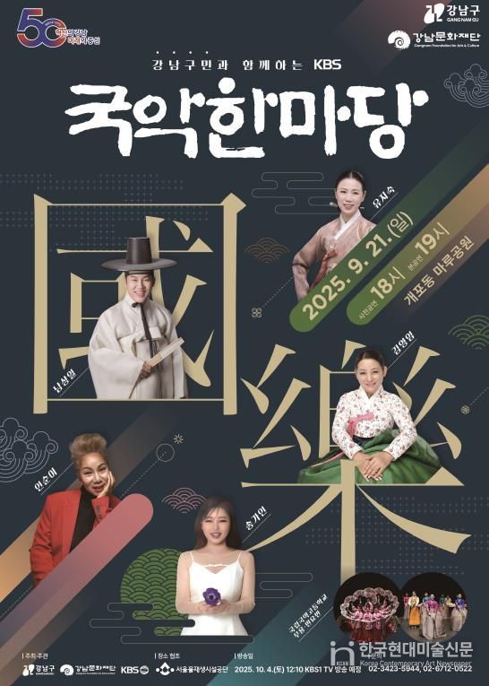 한국현대미술신문 배건 기자 | 꿈이 모이는 도시, 미래를 그리는 강남구가 개청 50주년을 기념해 지역의 국악 문화를 널리 알리고자, 오는 9월 21일 오후 6시 개포동 마루공원에서 KBS 대표 국악 프로그램인 ‘국악한마당’을 개최한다.