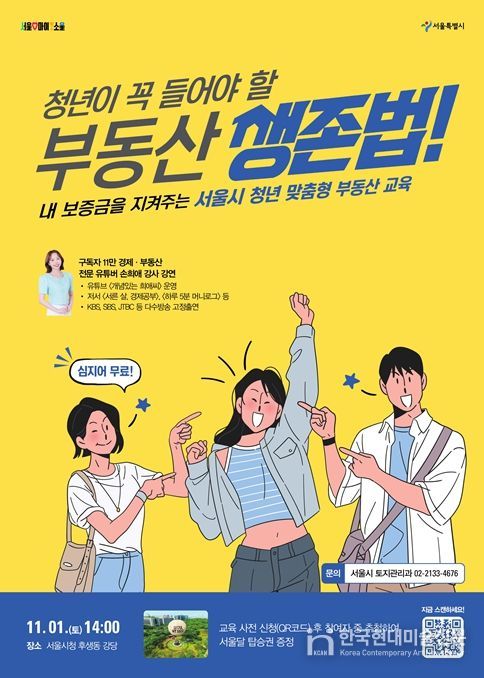 한국현대미술신문 배건 기자 | 서울시는 대학생, 사회 초년생 등 청년층과 국·내외 유학생이 스스로 전월세 계약 절차를 이해하고, 피해를 예방할 수 있도록 ‘청년 맞춤형 부동산 교육’을 진행한다.