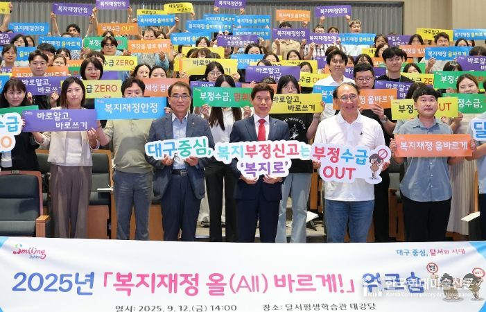 한국현대미술신문 정소영 기자 | 대구 달서구는 지난 12일 달서평생학습관에서 사회복지시설 종사자 및 사회복지직 공무원 150여 명을 대상으로 2025년 ‘복지재정 올(All)바르게!’ 워크숍을 개최했다.