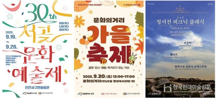 한국현대미술신문 박재남 기자 | 인천 서구는 제37회 구민의 날 행사와 함께 서구문화재단이 준비한 3개 문화축제가 9월 19일부터 21일까지 개최된다고 16일 밝혔다.