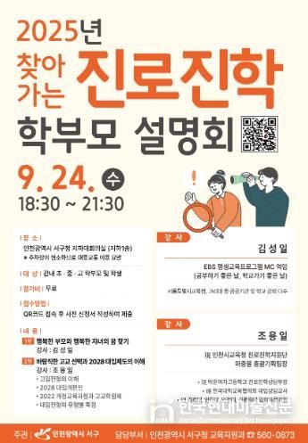 한국현대미술신문 박재남 기자 | 인천 서구는 2025년 찾아가는 진로‧진학 학부모 설명회를 총 2회 진행할 계획이다.