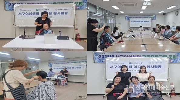 한국현대미술신문 정소영 기자 | 서구살롱헤어봉사단은 지난 15일 서구 가족복지센터 5층(서구여성센터)에서 지역 주민 10명을 대상으로 이미용 봉사 활동을 실시했다.