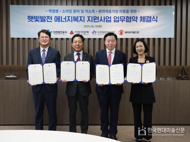 한국현대미술신문 박재남 기자 | 인천항만공사는 16일 인천항 태양광발전소 발전수익의 사회 환원을 위한 ‘햇빛발전 에너지복지 지원사업 협약’ 체결식을 개최했다고 밝혔다.