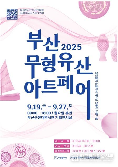 한국현대미술신문 정소영 기자 | 부산시는 오는 9월 19일부터 27일까지 부산근현대역사관에서 무형유산 보유자들의 전통예술 작품을 전시·판매하는 '2025 부산 무형유산 아트페어'를 개최한다고 밝혔다.