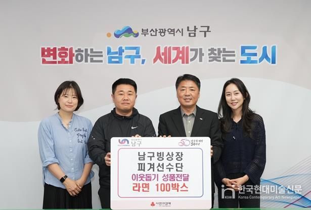 한국현대미술신문 정소영 기자 | 남구 빙상장을 이용하는 어린이 피겨선수단이 지난 15일 부산광역시 남구(구청장 오은택)에 라면 100박스를 기부했다.