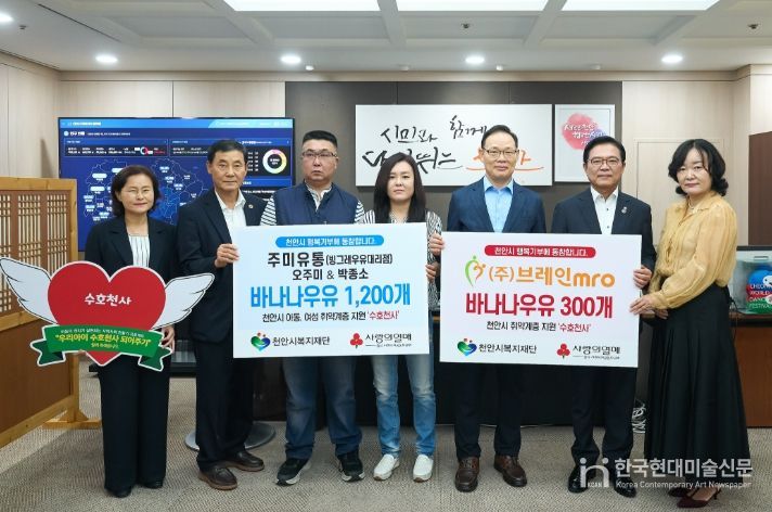 한국현대미술신문 신정은 기자 | 천안시는 주미유통(대표 오주미·박종소)과 브레인MRO(대표 김효열)가 우유 1,500개(270만 원 상당)를 천안시복지재단에 전달했다고 17일 밝혔다.