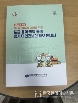 한국현대미술신문 원진 기자 | 강원특별자치도교육청은 교육 현장 내 중대산업재해 예방과 안전보건 관리 수준 제고를 위해 ‘도급·용역·위탁 등의 종사자 안전보건 확보 안내서’ 개정판을 제작하여 도내 698개 교육행정기관 및 공립학교에 배포한다고 17일 밝혔다.