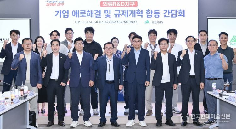 한국현대미술신문 정소영 기자 | 대구광역시는 9월 17일 오후 2시, 대구경북첨단의료산업진흥재단에서 홍성주 대구시 경제부시장 주재로 의료R·D지구 내 기업과 유관기관이 함께하는 ‘제3차 기업 애로해결 및 규제개혁 합동간담회’를 개최했다.