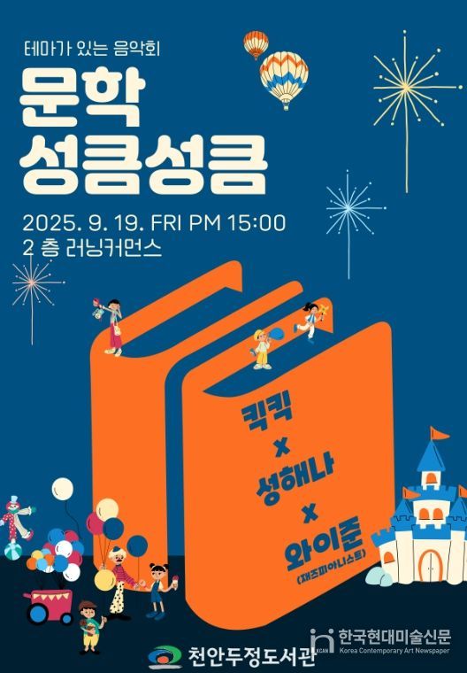 한국현대미술신문 신정은 기자 | 천안두정도서관은 독서의 달을 맞아 오는 19일 독자와 함께하는 북콘서트 ‘문학 성큼성큼’을 연다고 18일 밝혔다.