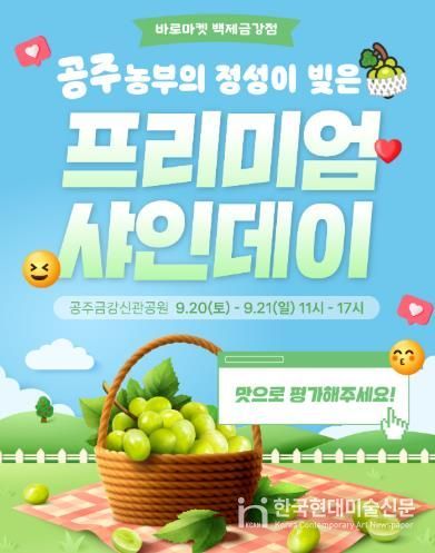 한국현대미술신문 신정은 기자 | 공주시 지역 포도 농가들이 오는 20일과 21일 이틀 동안 금강신관공원 내 바로마켓 백제금강점에서 ‘프리미엄 샤인데이’ 행사를 연다.