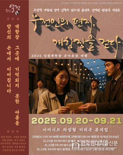 한국현대미술신문 박재남 기자 | 뮤지컬 '우전인의 편지, 개항장을 걷다'가 오는 2025년 9월 20일~21일 ≪2025 인천 개항장 국가유산 야행≫ 기간 중 개항장 일대에서 다시 선보인다.