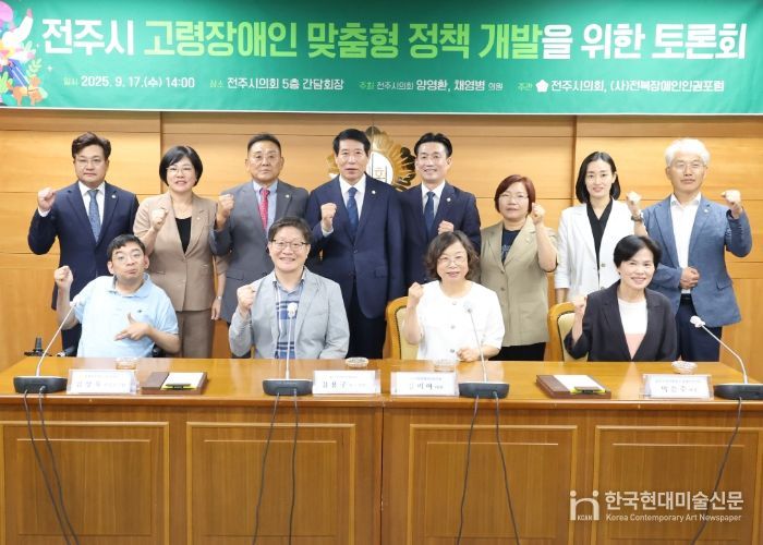 한국현대미술신문 기자 | 전주시의회는 지난 17일 전주지역 고령장애인 맞춤형 정책 개발을 위한 토론회를 의회 5층 소회의실에서 양영환(동서학, 서서학, 평화1‧2동), 채영병(효자2‧3‧4동) 의원 주최로 열었다고 18일 밝혔다.