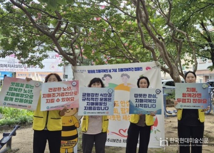 한국현대미술신문 기자 | 전주시보건소는 ‘제18회 치매극복의 날’(9월 21일)을 앞두고 치매에 대한 인식 개선과 예방 분위기 확산을 위해 지난 15일부터 오는 22일까지 전주지역 6개 노인복지관을 순회하며 치매극복주간 캠페인을 전개하고 있다고 18일 밝혔다.