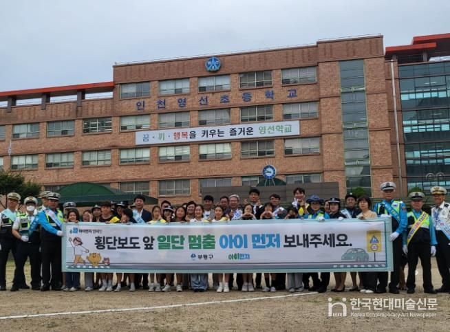 한국현대미술신문 박재남 기자 | 부평구는 18일 영선초등학교 앞에서 ‘어린이 교통안전 캠페인’을 진행했다.