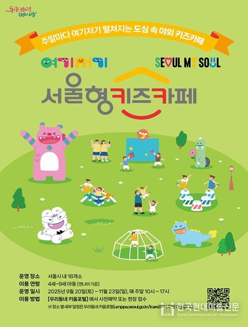 한국현대미술신문 배건 기자 | 1호점 오픈 이후 3년여 만에 누적 이용객 100만 명을 돌파하며 서울시 대표 양육친화정책으로 자리매김한 ‘서울형 키즈카페’를 이제 매주 주말마다 한강, 공원, 광장, 학교 운동장 등 야외에서도 만날 수 있다.