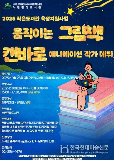 한국현대미술신문 배건 기자 | 서울 은평구는 녹번만화도서관이 2025 작은도서관 육성지원사업의 일환으로 초등학생을 위한 창의 융합 프로그램 ‘움직이는 그림책! 캔바로 애니메이션 작가 데뷔’를 운영한다고 밝혔다.