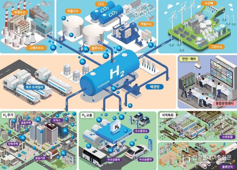 우선 한국가스안전공사와 협력하여 수소의 생산부터 수송, 소비 전 과정을 실시간으로 모니터링하고 안전하게 관리할 수 있는 AI 기반의 효과분석 시스템을 갖춘 통합운영관리센터가 구축된다.
