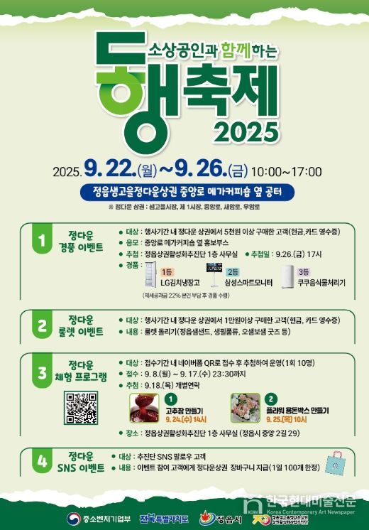 한국현대미술신문 기자 | 정읍시가 지역 상권 활성화를 위해 오는 22일부터 26일까지 ‘2025 정다운 할인 동행축제’를 정다운 상권 일원에서 개최한다.