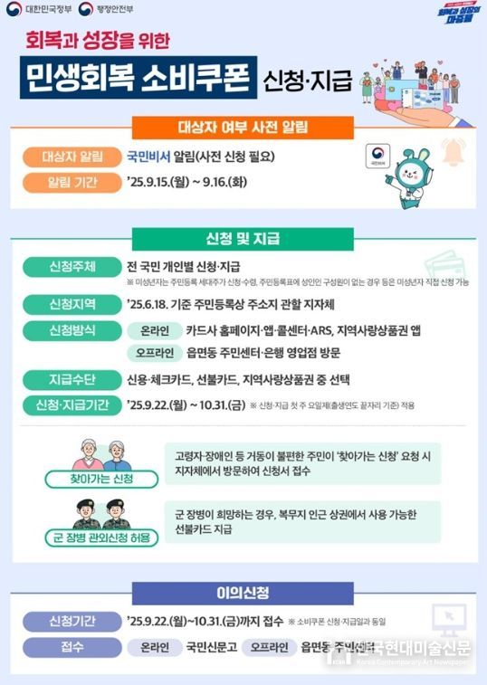 한국현대미술신문 기자 | 임실군이 9월 22일부터 소득 상위 10%를 제외한 군민에게 2차 민생회복 소비쿠폰 10만원을 지급한다.
