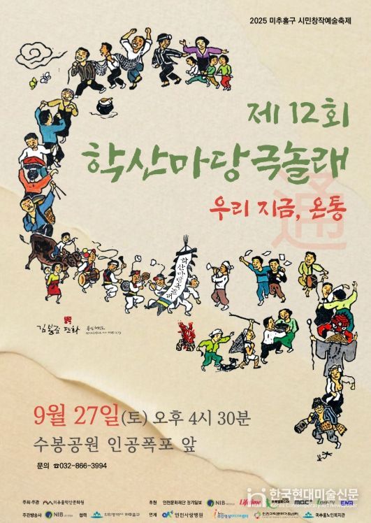 한국현대미술신문 박재남 기자 | 인천 미추홀학산문화원이 주관하는 제12회 미추홀구 시민 창작 예술축제 ‘학산마당극 놀래’가 오는 27일 오후 4시 30분, 수봉공원 인공폭포 마당에서 개최된다.