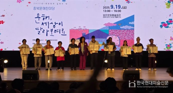 한국현대미술신문 신정은 기자 | 충북 괴산군은 성인문해교육을 받고 있는 괴산두레학교 학습자 9명 전원이 ‘2025 전국 및 충청북도 문해교육 시화전’에서 수상의 영예를 안았다고 19일 밝혔다.