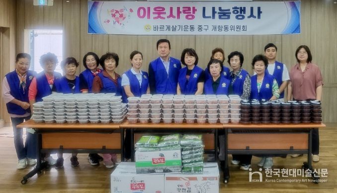 한국현대미술신문 박재남 기자 | 바르게살기운동 중구 개항동 위원회(위원장 이덕순)는 저소득 취약계층을 대상으로 ‘정성을 담은 이웃사랑 반찬 나눔 행사’를 실시했다고 19일 밝혔다.