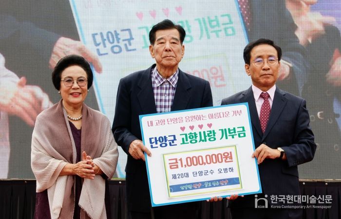한국현대미술신문 신정은 기자 | 충북 단양군은 지난 19일 단양 공설운동장에서 열린 신단양 이주 40주년 기념식에서 제20대 단양군수를 역임한 오병하 전 군수가 고향사랑기부금 100만 원을 기탁했다고 밝혔다.