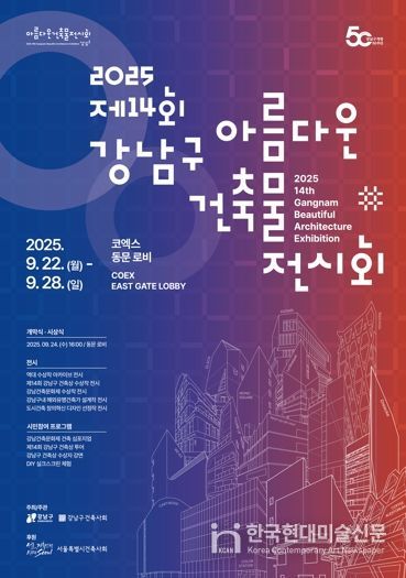 한국현대미술신문 배건 기자 | 꿈이 모이는 도시, 미래를 그리는 강남구가 오는 9월 22일부터 28일까지 코엑스 동측 로비에서 ‘제14회 강남구 아름다운 건축물 전시회’를 연다. 전시 기간 중인 24일 오후 4시에는 시상식과 함께 ‘건축심포지엄’이 개최된다.