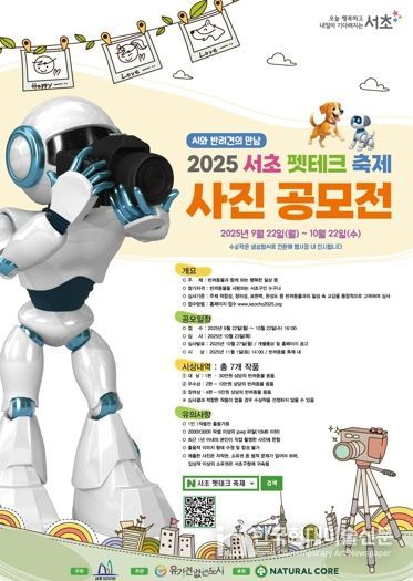 한편, ‘2025 서초 펫테크 축제’에는 ‘반려동물 사진공모전’ 뿐 아니라 ‘반려견 펫션쇼’, ‘펫티켓 운동회’, ‘AI 오징어게임’, ‘장기자랑 대회’ 등 반려견과 함께 참여할 수 있는 다양한 프로그램이 마련됐다. 자세한 프로그램 내용 확인과 사전 참여 신청은 축제 공식 홈페이지에서 가능하다.