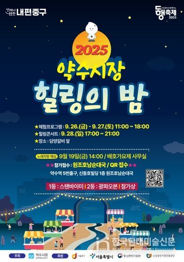 구 관계자는 “맛과 정이 넘쳐나는 약수시장에서 가을 정취와 함께 ‘힐링의 밤’을 만끽해 보시길 바란다”며 “이번 축제가 상권에는 활기를, 방문객에게는 즐거운 추억을 안겨주길 기대한다”고 말했다.