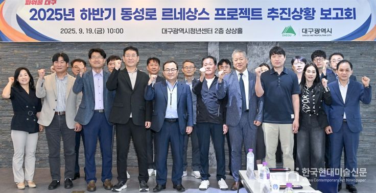한국현대미술신문 정소영 기자 | 대구광역시는 지난 9월 19일 오전 10시, 대구시청년센터 2층 상상홀에서 홍성주 대구시 경제부시장 주재로 ‘2025년 하반기 동성로 르네상스 프로젝트 추진상황 보고회’를 개최했다.